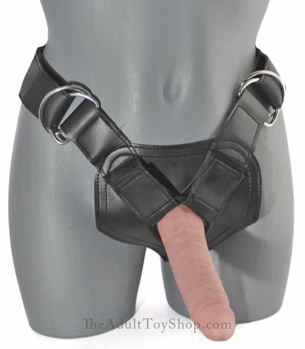 The heavy duty imitation leather harness looks hardcore, you certainly take sex seriously with this thing around! Thick double stitched PVC and extra wide waist belt is one of the best looking fetish style harnesses we’ve seen.