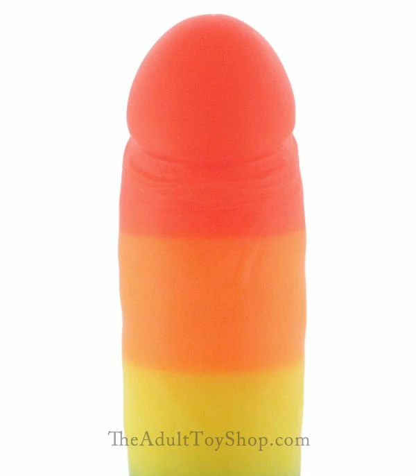 The head is a bit thicker than the rest of the shaft for instantaneous stretch. A stupendously sticky suction cup base completes this brilliant rainbow dildo sex toy. Seamless silicone surface is colored with rainbow stripes for you to show off your pride! It is also harness compatible for extra playful strap on harness sex play for 2. Good times in the bedroom await for everyone! This has been featured in our rainbow dildo review.