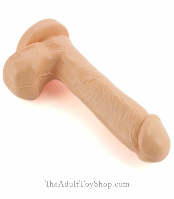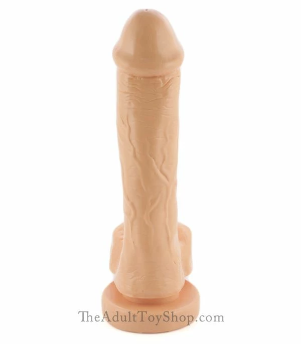 The budget style visual detail works; if you don’t care what your dildo looks like and you simply want to get a big dildo for cheap, this one is your best choice. The head has an overhanging muffin top that feels noticeable. A set of sculpted balls completes the large and imposing look.