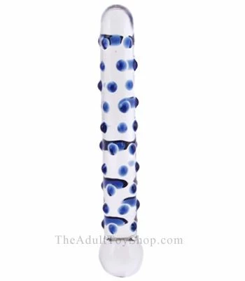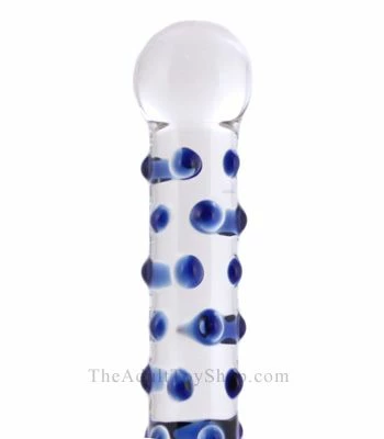 The blue nubs along the shaft of this glass dildo adds so much pleasure to your thrusting! The Anal Wand Glass Ass Toy is perfect for vaginal or anal play, you can use either end for penetration. One end is a larger bulb that will feel wider when inserted than the other end, which is rounded for a comfortable feeling deep inside.