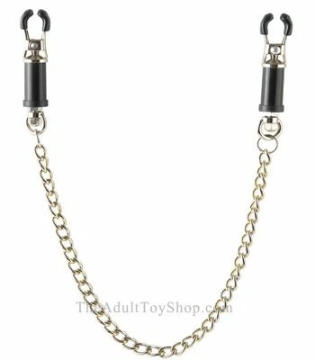 Precision twist-shafts gently adjust the amount of squeeze applied to your nipples. With each turn of the decorative barrel cylinder, the rubber-lined clamps gently apply pressure to your nipples, increasing sensations and forcing your nipples to perk with pleasure!