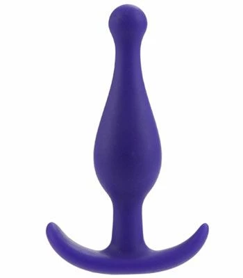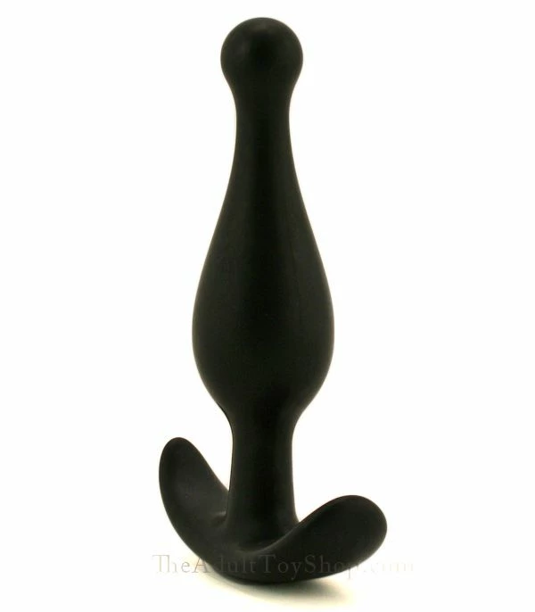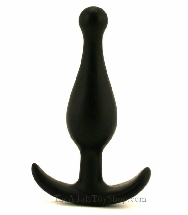 Cute, fun with a dense bump at the top, leading to a gradual tapered mid-shaft finishing off with a skinny neck that bends over a ski-shaped end that doubles as a handle or just wedges between your butt cheeks. Curved ski shaped base is also harness compatible for pegging play.