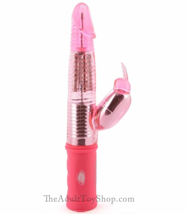 Underneath the head, 6 vertical rows of stacked metal beads spin furiously on an axis to target the muscles just inside the vagina entrance that clench during orgasm. The beads spin during the muscle pulsing to provide an erotic surge of pleasure. The rabbit vibrator stimulator sits atop of a powerful vibrating egg. The bunny head is soft and squishy while the ears are flexible and fluttering creating a “tickling” sensation on the clitoral hood.