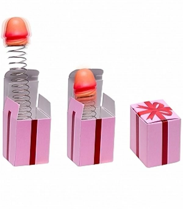 It’s just like a Jack in the box, this little box opens to reveal a tiny pecker attached to a metal coil spring that bounces upwards once the lip it lifted up. It’s cute, funny certainly stupid and most definitely hilarious.