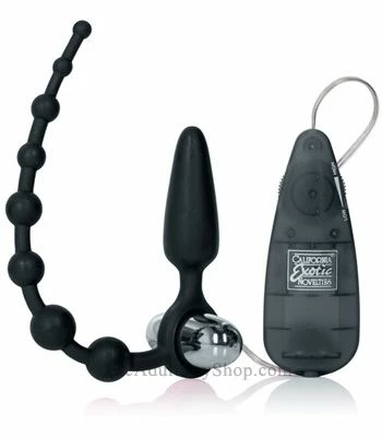 Here’s a cool variation on the typical small vibrating butt plug – this one has a bullet that slides through a loop at the base for vibration between the bum cheeks. Sound silly perhaps, but you’ll love it when you try it. The tingling on the skin boosts your sexual arousal, heightening every touch. Stack on the anal stimulation by tag teaming with the flexible strand of anal beads.