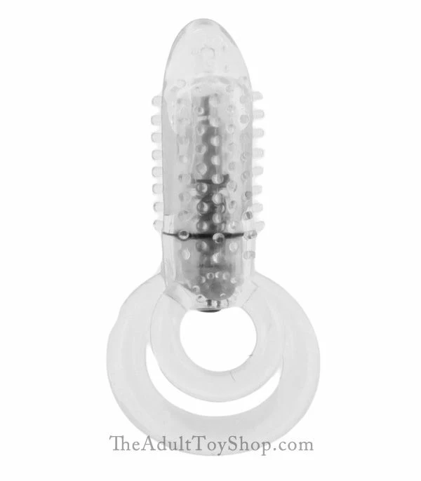 Dual rings help to keep the device in place and preventing it from rolling around. The smaller ring fits around the base of the erection while the bigger and thicker ring fits around his balls. Both rings are very stretchy; the jelly soft, plump thick bands maintains his comfort at all times. A fabulous powerful vibrating cock and ball ring with one of the most unique designs out there.