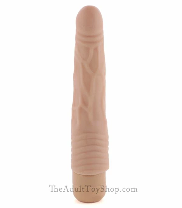 One of the most heavily veined vibrating dildos we’ve seen. The sensually soft shaft can bend easily but retains enough stability so that you’ll feel the veins as you thrust. The texture is delightful – just enough to add a fun sensation to vibrator sex but not too overboard where you’ll find it annoying. It’s just right!