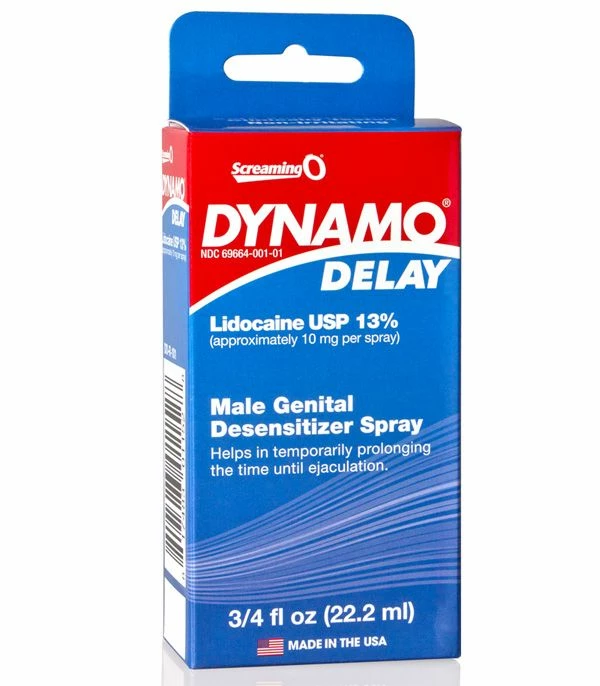 Dynamo Delay spray is a clinically tested fast-acting male delay spray for the penis that provides safe and effective results. This non-irritating spray temporarily numbs his penis using a concentrated 13% lidocaine formula, which provides a topical numbing sensation that works in minutes so you can get to the action right away – and make it last longer than normal.