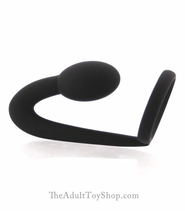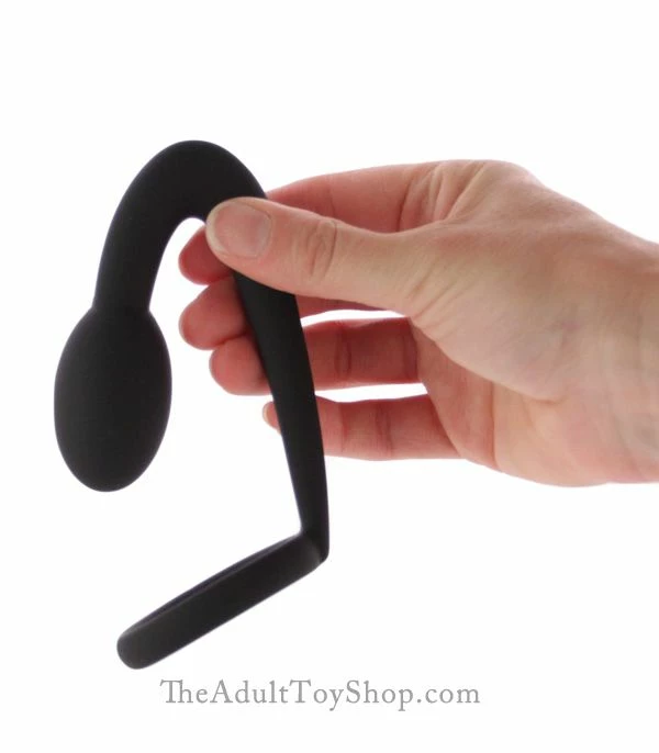 The firm bulbous prostate plug is placed atop of a fixed “J” shaped curve as you can see in the pictures. This ergonomic form assures it touches the prostate upon insertion and stays there. The connecting silicone strand thins gradually and increases in flexibility so that as it crosses the scrotum, the strand can flex as needed to follow your body contours.