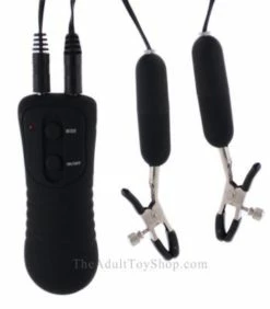The controller is easy to grasp and easy to use, simply press a button to cycle through the settings. The battery pack and vibrators both have a sensually warm rubber coating so you won’t feel cold metal touching your chest. The rubber tipped clamps have a screw that allows the user to tighten to loosen to their desired pinch. The clamps feel light and don’t require too much pressure to stay on the nipples.