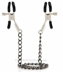 Looking for nipple clamps for first timers? This is the perfect choice. They are kind to your budget, so it’s easy to try something new. They don’t skimp on quality however, the rubber tips are gentle during the pinch. Turn the screw to tighten, fully adjustable tips will fit any nipple size. Concave design is more ergonomic for the round shape of the nipple. Nickle-free metal won’t tarnish the skin either. Connected with a lightweight chain, you’ll enjoy the tantalizing feel of the cold metal on your chest and it looks stunningly sexy when worn during lovemaking. Why not try something new today?
