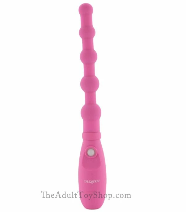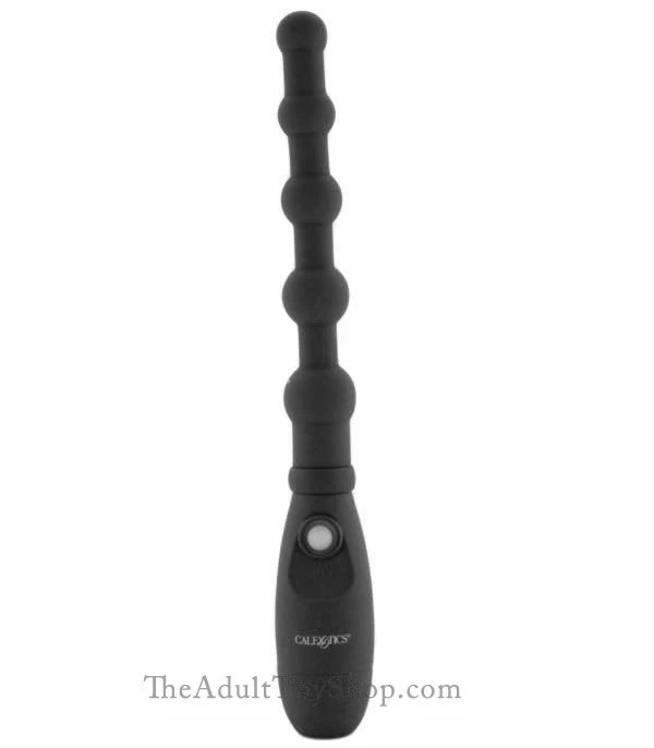 The waterproof self contained wireless vibrator features a motor positioned in the top bead. If you like deep tingling vibration, there is no better choice. The motor spreads vibrations nicely down the length of the beaded shaft. Enjoy the feel of the vibrating silky smooth yet solid beads and unleash a whole new realm of kinky sexual adventures with your lover.