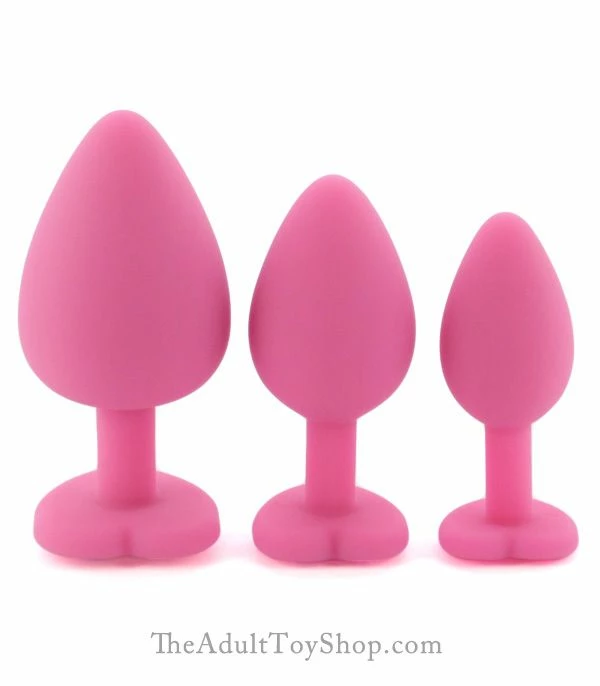 The thin necks resist falling out so you can strut your stuff all throughout the house! They are so pretty when worn you’ll want to wear one during sex every time to give your lover a pretty view from back there. Heart Butt Plug Trainer Kit will surely become a real “gem” in your sex toy collection! This set includes all 3 butt plugs as shown, available in either pink or black. Regardless of the color chosen, the heart gems are clear. This product has been featured in our gem butt plug review.