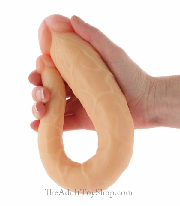 The shaft has raised veins surrounding all sides which not only adds a realistic looking appearance, but you’ll appreciate the sensation of the sensual texture. The shaft is quite bendable and relatively soft, you can arc it whatever direction you need for a good, hard ramming from the wide firm end, or enjoy a tiny poke from the thin, soft end.