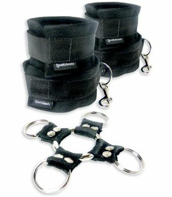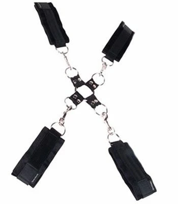 Tired of your lover always crawling away? Make it impossible for them to escape by hog-tying them! Keep your partner exactly where you want them with this unique hog tie system. This erotic and unique systems removes the need for bondage rope and complicated knots. If you want to experience a unique BDSM sessions but don’t want to have to read a book while you are fussing with a rope, this system is the answer for you! The hog tie comes with 2 ankle cuffs and 2 wrist cuff which are connected to each other by metal clips and a central square piece. The square piece is very durable and reinforced, so your partner can pull all they want, it won’t let them get out! To use: place the cuffs on your partners wrists and ankles, then one by one, gently pull their limbs back and clip the cuffs onto the central square. Voila! No more escaping and a partner who’s ready for anything!