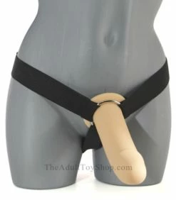 The high quality pure silicone dildo has a warm, silky smooth feel for a highly erotic experience. It glides so gently! The interior hole feels smooth too, easily cradling the man’s unerect penis. It’s a wonderful option for men with erectile dysfunction. The dildo can be removed from the metal harness ring and used separately. The pure, unscented silicone is a great option for couples with sensitive skin.