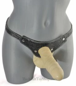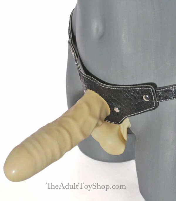 An un-erect penis can easily fit inside the hollow interior. The hollow strap on penis enhancer features a latex testicle pouch which looks stylish and tidy, but also adds subtle pleasure for him. The pouch is thin and floppy so it’s easy to place your scrotum inside. This also helps to keep the device stable while worn.