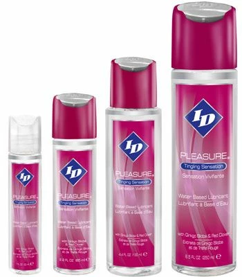 A trendy lubricant with added tingling agents to heighten the entire experience. Try it on your vibrator for a buffet of sensation! ID Pleasure features the same formula as the well loved ID Glide only with added extracts of Ginkgo Biloba, Red Clover & Menthol: