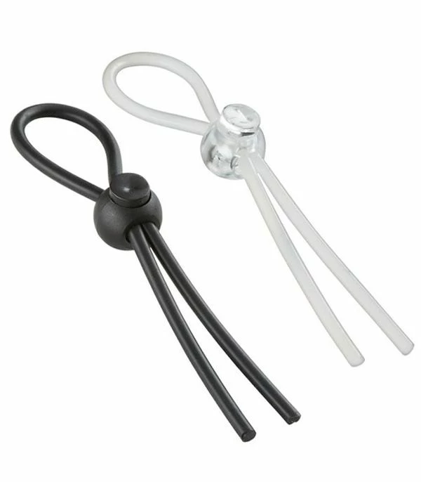 Of course you can use one at a time, but in the photos & video we demonstrate how both should be worn in unison. The long silicone strands dangle and tickle your balls from front & back adding a erotic touch to your sex life. Easy to adjust, simply press the button and pull the bead downwards to loosen, then press the button and pull upwards to tighten.