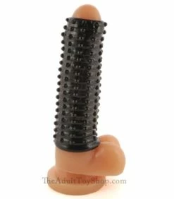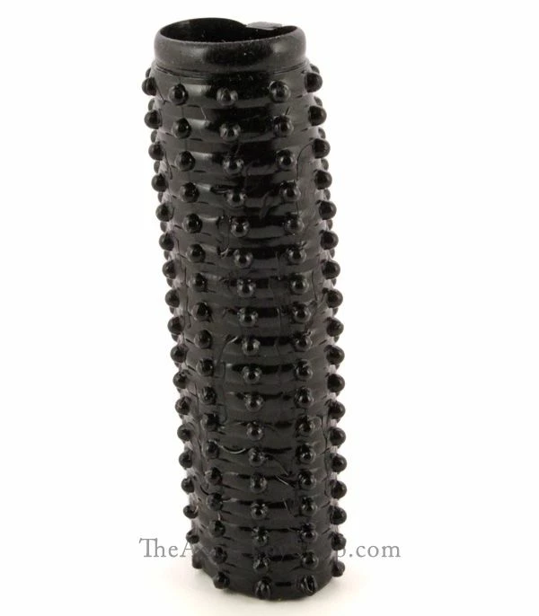 The long sleeve is extra stretchy, so add a dollop of lube and spread it around the smooth interior and the sleeve will slip over his erection. The exterior is lined with hundreds of soft, raised bumps over a subtle ribbed layer. The sleeve is completely reversible so if you want bumps to rub the penis during sex, flip it inside out and enjoy the smooth side on the exterior.