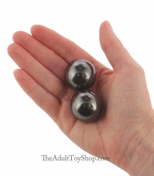 These balls weigh about 58 grams each, which is considered heavy for the beginner, but enough to provide a good muscle workout. Bigger than standard Ben Wa balls; this product is ideal for ladies looking for powerful sexual arousal. How would a lady get the ball out of the vagina? Lift up a leg and roll it out with your finger.