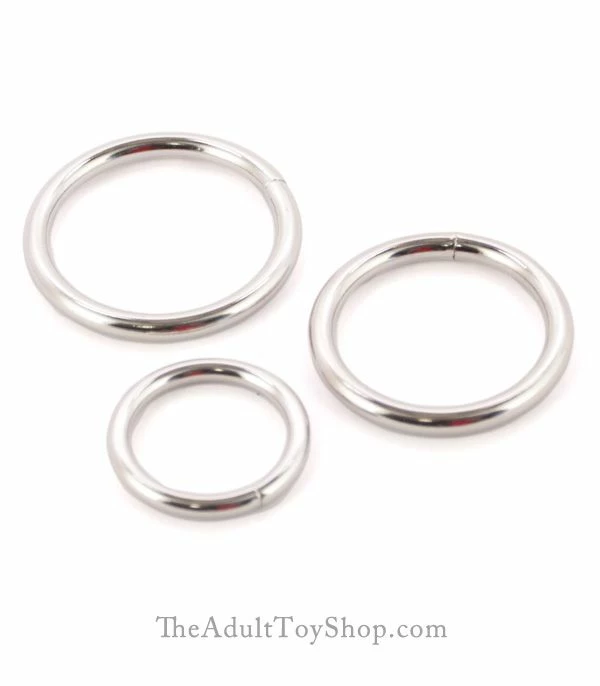 Metal cock rings are hard, cold and provide that intensely kinky touch right down fetish alley. These nickel rings are heavy duty, you’ll notice the substantial weight in the palm of our hand. Make sure to measure your penis diameter when fully erect to make sure it will fit. You don’t want to place too much pressure on your shaft – needless to say that unlike all other types of cock rings, metal can never flex or bend! Fitting is always a top concern so this set includes 3 metal cock rings to assure at least 1 of the 3 will fit. You can stack them and wear more than one at a time if desired too.