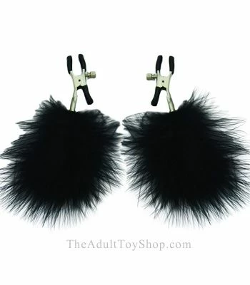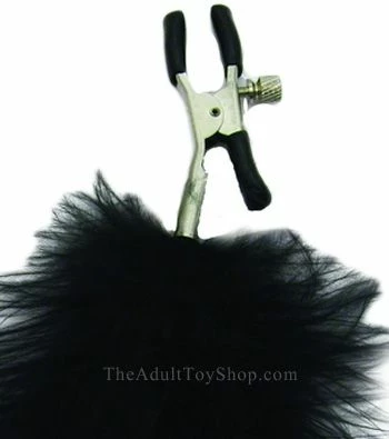 Cute & sexy, these pompom style feathered nipple clamps remind us of cheerleader pompoms. They are too-cute, innocent with a real naughty and mischievous streak, hence the name! The adjustable alligator style clamps fit perfectly onto your nipples with no uncomfortable pinching.