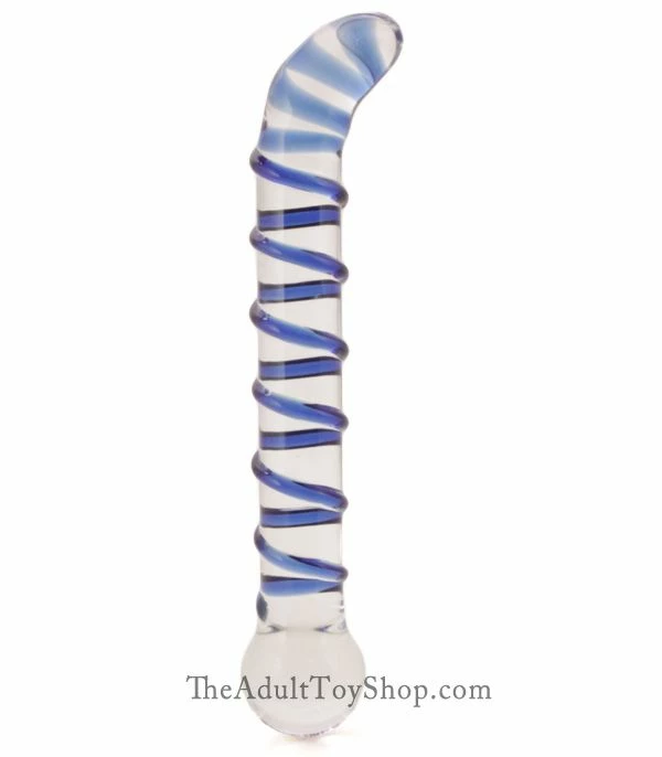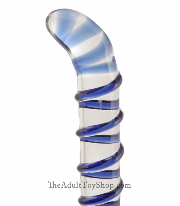 Super slimline design is excellent for beginners, the shaft itself is only 3/4 inch wide, but add on the raised swirled pattern and it maxes out at a mere 1 inch across. The spiraled swirl running along the shaft begins just under the curved tip and ends above the round ball. You’ll feel the heavy, sudden texture of the blue spiral when you thrust it in and out.