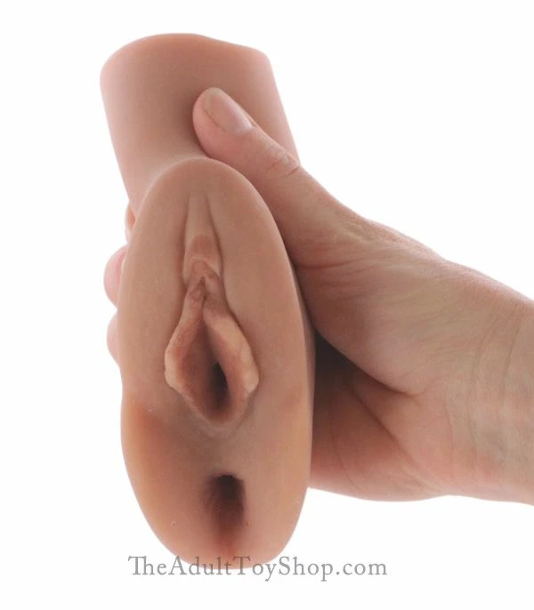 This one features dual entry. Choose from pussy or ass hand styled with the exact same detailing and motion you’d find in real life sex. The smaller rectangular size is more discreet and stashes away in your bedroom much better than the large ones which can be hard to hide. It’s also less expensive but you get the same quality feel. The hand painted wide open pussy lips simply beg for cock. The cute puckered anus is nestled deep between what would be closed thighs in real life.