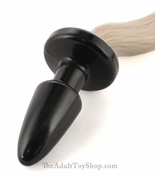 The medium sized butt plug has a sturdy rubbery feeling stature perfect for intermediates. The long plug gradually tapers at the end helping it slide in quickly, make sure to add plenty of anal lube to glide it in place without friction. The flared rounded base keeps it propped between the butt cheeks so all your partner will see is the blonde silken tail hanging from your backside.