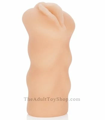 A chunky triple ridged small pocket pussy sleeve. If you’re wondering about the purpose of the exteriors’ triple ridges, they are to help your hand hold on. Smooth pocket pussies may slip from the hand too easily, especially if your hand gets wet from being in the shower, or from lubrication etc.