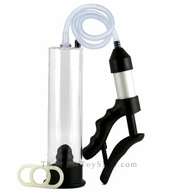 A durable and popular penis pump model that offers men incredible suction. This product proves you don’t need to spend a fortune to get a high quality penis pump. The trigger handle produces forceful suction. Includes a long latex sleeve and a tight erection ring with 2 handles for easier removal. * Dildo in 4th picture is not included.