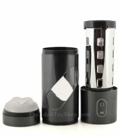The cylinder can be disassembled for easy cleaning. The sleeve has a closed end so it’s easy to wash ejaculate from the interior. Yes, you can ejaculate inside this toy. Twist the cylinder base to detach the sleeve from the motor. Twist the top to detach the mouth from the sleeve.