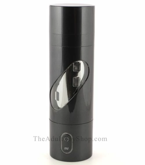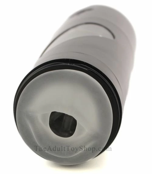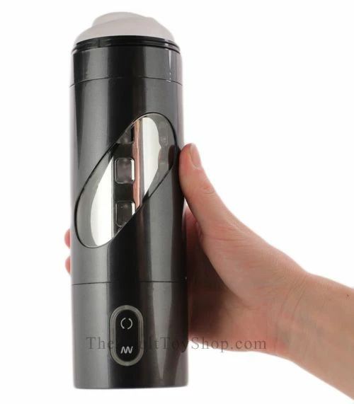 The mouth shaped entry hole stretches easily to accommodate your penis. Insert your erection into the cylinder and press the button button to start the rotation. The top button reverses the rotation. Keep pressing the bottom button to cycle through the 3 speeds and 6 rotation settings. The settings vary from fast rotation reversal to irregular patterns of rotation. To turn off the motor, hold the bottom button for 3 seconds.