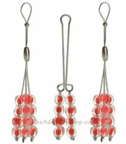 These nipple rings are more comfortable than any style made form metal. Below, a cluster of ruby colored plastic jewelry beads enhance your feminine attitude. Further down the body, the metal clitoral prongs add a sweet surprise when he finally gets a glimpse up your skirt. It is a surprise he never even knew he wanted! Non-Piercing Nipple & Clit Rings include attached matching ruby colored beads that also sway from the bottom of the metal clasp.