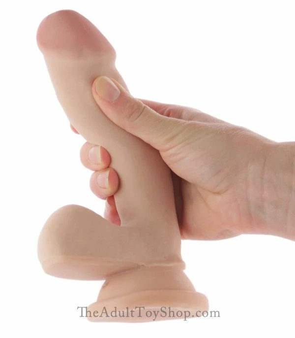 The pair of cute firm testicles fits just right in the palm of your hand making a superb handle for solo play sessions. A thick suction cup base stays put where you place it. The real highlight is the blunt torpedo head however, we are excited about this new realistic skin like feeling dildo toy which features one of the most original shapes we’ve seen in a small dildo for women.