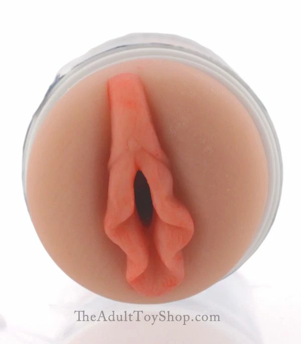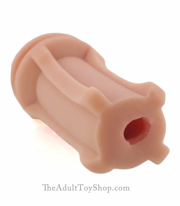 The interior tunnel of the sleeve is irregular with alternating ridges, bumps and ribbed sections designed to imitate the differing textures inside a woman’s vagina. The sleeve is open on the end and also removable from the container.