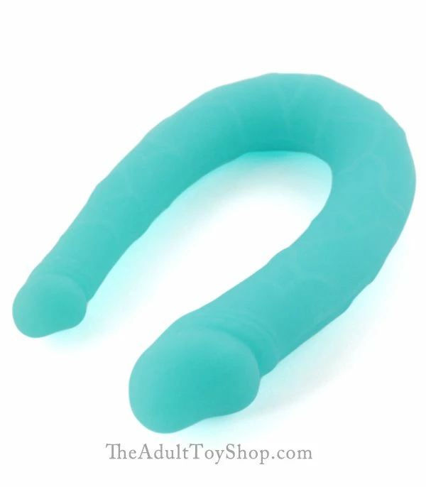 The thin end is less than an inch making anal insertion easy. The vaginal probe has a cute mushroom tip for popping fun as it thrusts in & out. The U shape you see here is permanent. The dildo is stiff and firm but can flex enough to assure you’ll be able to target both holes with each of the ends.
