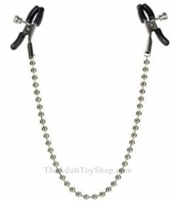 Stylish silver beads adorn your body and give you a sex goddess look! Sexy and seductive, these nipple clamps feature an elegant strand of round silver beads connecting the two clamps. Each adjustable clamp is rubber coated and made for comfort.