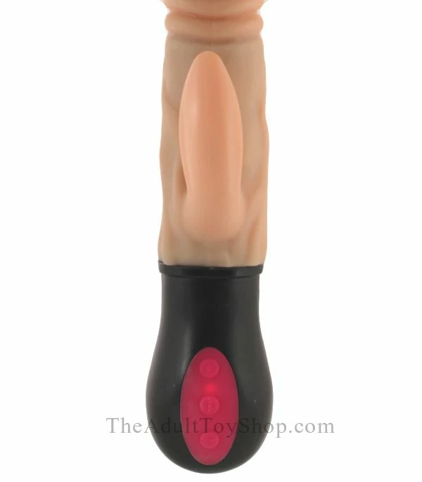 The shaft has a heater! Press and hold the top button for 3 seconds to activate the warming mechanism inside the shaft. It only takes a few minutes for the heater to spread warmth throughout the whole shaft. Never get that unpleasant, unsexy chill from your vibrator ever again, it inserts with a warm feel just like a real man! Hold the button for 3 seconds to turn off the heater.