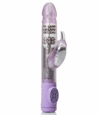 The Thrusting Jack Rabbit vibrator is a powerful orgasmic treat for the senses; the next generation of female sex toy. It features an extra wide row of twirling metal beads that spin in unison with a strong motor on a vertical thrusting axis that will not stop spinning, even while the muscles clench through the best orgasm.