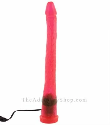 The motor, (visible in the photographs above), sits at the base and offers a slight tingle throughout the bottom few inches. It operates quietly by the separate power pack. This completely flexible beginners vibrating anal sex toy is one of the most comfortable versions available for sale. The phallic sculpted tip slides in well, practically guaranteeing never to make the user complain about a pinch.