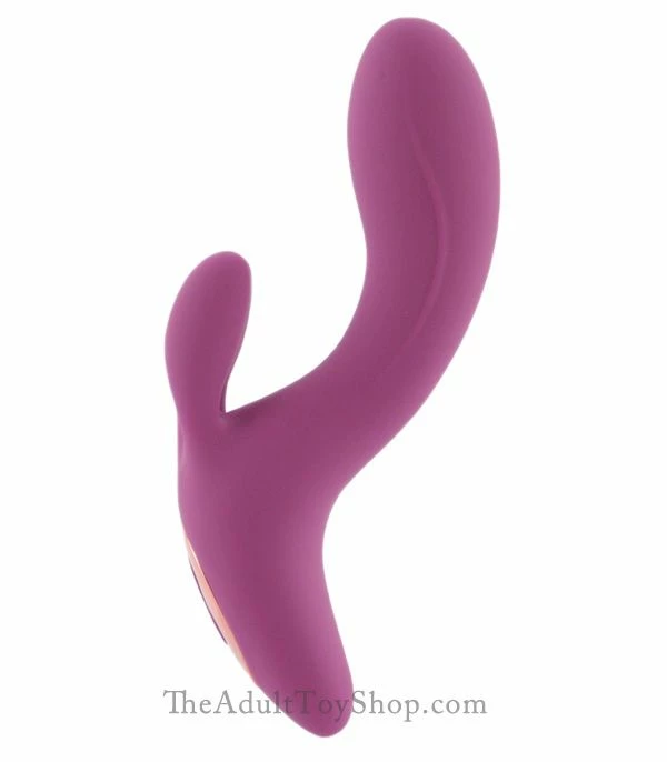The curved shaft is solid and coated in a layer of silky smooth silicone. The solid insertable shaft is perfectly shaped for massaging the Gspot instantly upon penetration. The triple prongs are very flexible and floppy so each lady can place them on her labia exactly where she wants them. The middle stimulator sits on top of the clitoris while each side prong touches the labia.