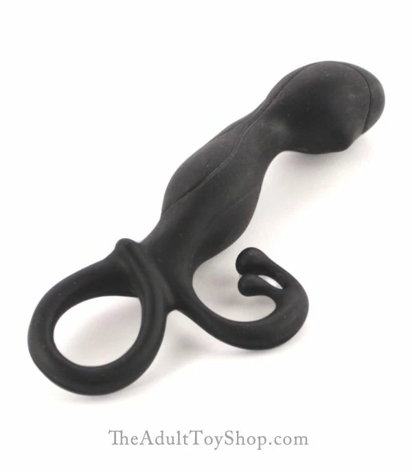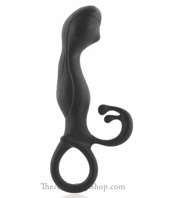 Below the head, a skinny and flexible neck connects the wider and slightly stiffer body. Moving downwards, the base of the body has a floppy very thin curved tickler for a whisper flicker on the back of the scrotum. Finishing off the probe is a stretchy loop large enough to fit a couple of fingers. A fancy looking shape with stylish ridges makes this prostate toy look manly yet modern.