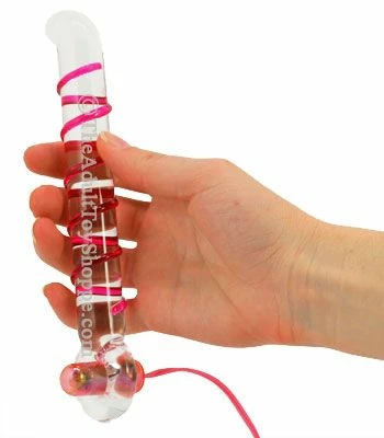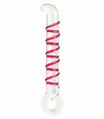 This gorgeous clear glass dildo features pink swirly ribs that add sensations and textures to your thrusting! The curved head helps you find your g spot easily and massage it erotically.