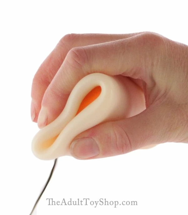 This is a masturbator best for men with a small penis. The hole on the solid tube cannot stretch and measures 1 1/2 inches inside diameter. If your erection is wider than 1 1/2 inches, across, it won’t fit inside the hole. Lubricant is a must for this interesting male pleasure device and the slick, slippery feel is truly unlike anything else you could stick your dick into.