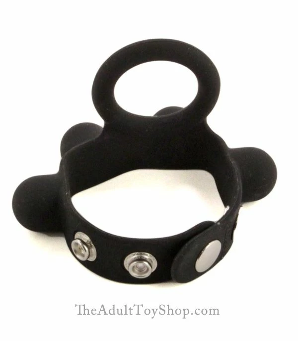 Three metal snaps allow the wearer to adjust the tightness of the testicle strap. The device can also be worn “upside down” with the weighted beads underneath the shaft as opposed to above it as we’ve displayed in the photos here. Plenty of versatility, a full range of size adjustment and stylish modern silicone crate one of the finest penis rings for men we’ve seen in a long time.